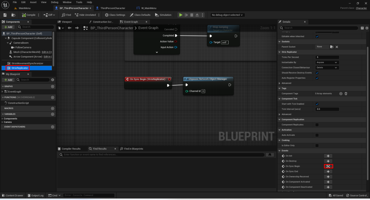 次に、StrixUnrealTpsのWidgetBuleprintのW_MainMenuを開いてEventGraphを選択します。